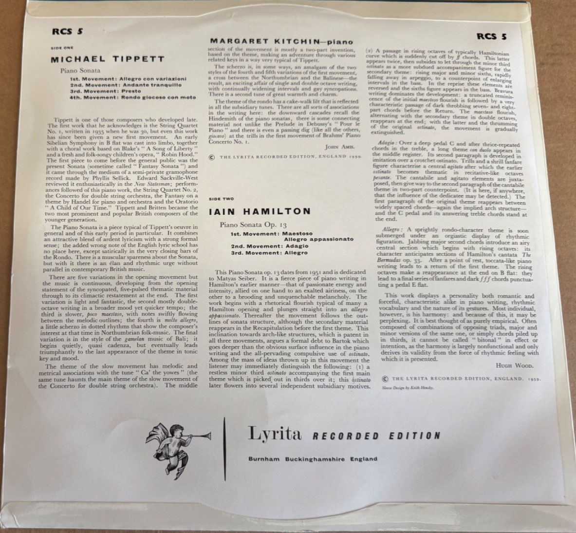 | Piano Sonata no.1 (revised version 1954) | July 1958 Lyrita RCS5 later cover reverse mono (1960), reissued on MHS 7022 (m) and Lyrita REAM.2106. Personally supervised by the composer | |